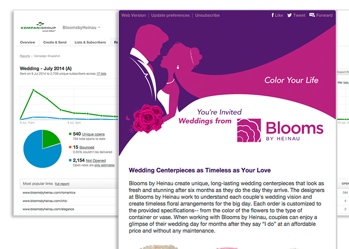 In the thick of a Valentine’s Day rush, Kompani Group shifted Heinau’s web platform from a locally hosted website to a cloud-based one, and implemented an on-demand scalable solution with hosted e-commerce provider 3dcart. Besides resolving bandwidth issues, we took the opportunity to add a number of strong new features to Blooms by Heinau’s online store and their marketing ecosystem as a whole.